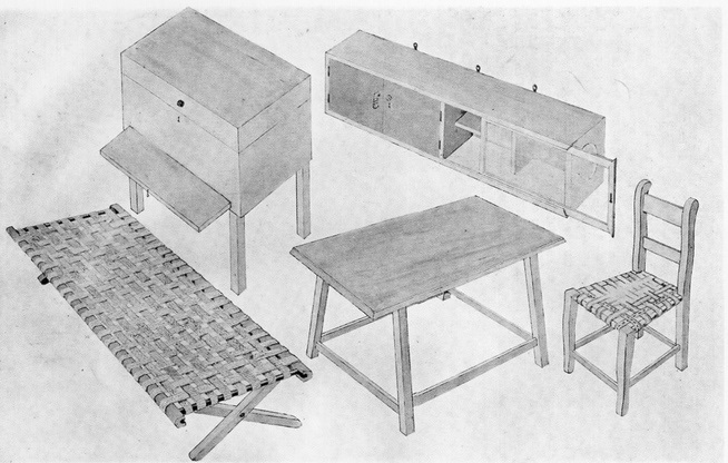Ultimately these ideas helped her concretize diverse furniture lines characterized by the seamless integration of industrial techniques and artisanal materials that were in perfect functional and aesthetic harmony. She received considerable international attention for these projects including winning the 1941 (New York) Museum of Modern Art organic design competition (fig. 3), alongside Eames and Saarinen, for her4 low-cost five-piece rural furniture made of pine, jute, and agave fiber as well as recognition at the 1957 Milano Triennial (fig. 4) for the outdoor spaces she designed at the aforementioned hotel.