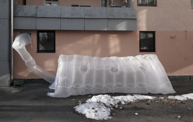 Es curioso ver cómo diez años después de Homeless Vehicle, de Krzysztof Wodiczko, Rakowitz afronta la problemática de los sin techo en Nueva York bajo un enfoque totalmente diferente. Mientras que Wodiczko planteaba con su “carrito” la movilidad (es decir, la huida) como estrategia de supervivencia, Rakowitz interviene ampliando los límites del confort en la ciudad existente, ya que la ciudad que nos rodea, aunque no sea ideal, sí que es real. Por otra parte, al analizar la intervención de Rakowitz no podemos dejar de referirnos formalmente a Suitaloon, de Michael Webb (1968). La “casa móvil” de Webb desdibujó las fronteras entre la ropa y la construcción. Suitaloon era un envoltorio inflable para una o dos personas con el que fácilmente podías desplazarte, con el objetivo de fomentar la movilidad física de su propietario.