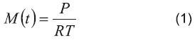 Donde M(t) es la concentración de metano en un tiempo t (molL-1); P es la presión registrada por el OXITOP® (atm) en un tiempo t; R es la constante de los gases ideales (atmLmol-1K-1) y T es la temperatura del experimento (K).