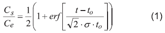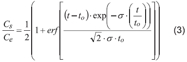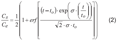 Donde erf[x] es la función error de x, t es el tiempo, t0 es el tiempo donde la concentración de salida es la mitad de la concentración de entrada, σ representa la desviación estándar, Ce y Cs son las concentraciones del analito a la entrada y a la salida, respectivamente. Para observar el modelo que mejor se ajusta a los datos experimentales se realizó un procedimiento presentado por Tejada et al. [20], el cual realiza la suma del cuadrado de los errores y el coeficiente de correlación de los datos experimentales y los modelados.