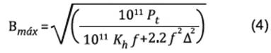 Βmáx = inducción máxima en Gauss. Δ = espesor de la chapa en mm.