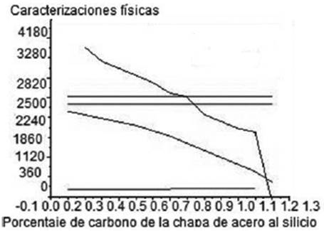El análisis de fallas en la chapa de acero al silicio incorpora el cálculo de las pérdidas totales en el núcleo de los transformadores de distribución debido a las Corrientes de Foucault e Histéresis Magnética, por lo cual es necesario realizar análisis químico a la chapa de acero al silicio (Ver tabla 4) para determinar el porcentaje de carbono, cuyo referente es utilizado en las propiedades físicas de las aleaciones de acero al silicio entre las cuales se encuentran: resistencia eléctrica, fuerza coercitiva, conductibilidad térmica, inducción remanente y permeabilidad magnética , estas se muestran en la Figura 1.