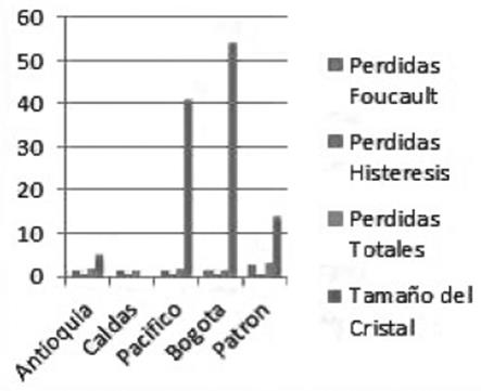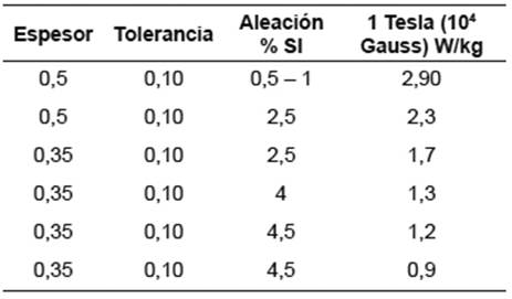 Se producen en cualquier material conductor cuando se encuentra sometido a una variación de flujo magnético. A continuación en la Tabla 2 se muestran las características para la determinación de las pérdidas de potencia (W/kg).