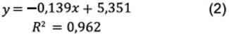 Donde la variable independiente es el tiempo del extracto, en días, y la variable dependiente es el logaritmo natural del área bajo la curva de la relación corriente - potencial de oxidación); debido a que a mayor área bajo la curva (Tabla 2) es mayor la capacidad antioxidante del extracto ¨¨.