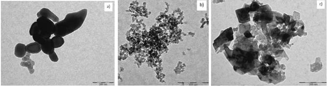 De otro lado, el estudio de la morfología y tamaño de partícula sugiere que para todos los catalizadores se presentan regiones oscuras las cuales se asocian a la presencia del CuO cristalino, y de nitrato de cobre presentes en el catalizador. La Figura 3a, muestra que el catalizador Cu/ZnO posee cristales de formas variadas entre aciculares y esféricas con tamaños de aglomerados entre los 200 y los 1000nm, y que la distribución de los cristalitos no es homogénea.