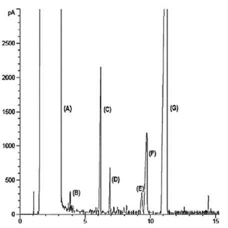 La muestra a analizar fue derivatizada empleando Hexametildisilosano (HMDS) y Clorotrimetilsilano (TMCS), como disolvente se empleó piridina. El cromatógrafo de gases empleado fue un CG Hewlett Packard 6890 y las condiciones de trabajo fueron: para el Inyector en Modo Splitless, temperatura 563K, el detector FID (Flame Ionization Detector) a una temperatura de 573K.