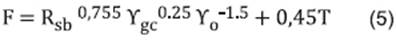 Co = Compresibilidad del aceite, psi-1 Rsb= Relación de gas disuelto en aceite, SCF/STB ɣgc= Gravedad específica del gas, Adimensional ɣo= Gravedad específica del aceite, °API