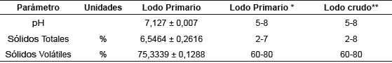 Los parámetros determinados del lodo se presentan en la tabla 1, donde se hace una comparación con los rangos reportados por Turovskiy et al. [18], y por Donado [19]. El pH del lodo es neutro, y el contenido de sólidos volátiles es alto, lo que indica que posee gran cantidad de materia orgánica. La composición del lodo varía durante el tratamiento de las aguas residuales y depende del proceso específico aplicado; los valores de los lodos reportados de la PTAR de Sotaquirá se encuentran dentro de los rangos establecidos por otros autores.