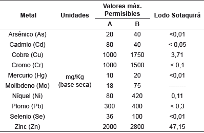 Teniendo en cuenta el decreto 1287 de 2014 que establece los criterios para el uso de biosólidos generados en plantas de tratamiento de aguas residuales municipales, se cuantificaron los metales pesados presentes en la muestra de estudio. Los resultados obtenidos se presentan en la Tabla 3, donde se observa que el contenido de los metales está por debajo de los valores máximos permisibles establecidos en el artículo 5 del decreto anteriormente mencionado.