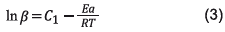 Donde C1 es una constante. La energía de activación puede calcularse a partir de la pendiente de lnß en función de 1/T.