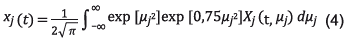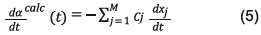 Donde xj (t) es la fracción del material sin reaccionar en el tiempo; Xj (t,E) la solución de la ecuación cinética de primer orden para una energía de activación dada; μj=2 (E-EQj)/(√/2σj), un cambio de variable que depende de la energía de activación promedio E0J y de la desviación estándar de la distribución de energías de activación σj. La derivada de la conversión se calcula de la siguiente manera: