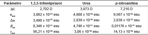 Palavras-chave: química computacional, teoria funcional de densidade (DFT), 1,3,5-trifenilpirazol, ótica não linear, orbitais HOMO-LUMO, descritores de reatividade.