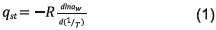Donde: a w , actividad de agua, decimal; T, temperatura absoluta, K; q st, calor isostérico neto de adsorción, kJ/kg; y R, constante universal de los gases, 8,314 kJ kmol -1 K -1 , para el vapor de agua 0,4619 kJ kg -1 K -1 .