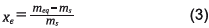 Donde: X e = humedad de equilibrio en b. s.; m eq = masa de la muestra en el equilibrio, (g)., y m s = masa de la muestra seca, (g).