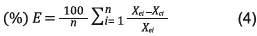 Donde: X ei es el contenido de humedad experimental (g agua/ g m.s.); X ci es el contenido de humedad calculada a partir de cada modelo (g agua/g m.s.); n, es el número de observaciones.