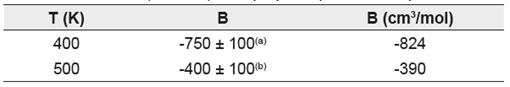 A comparação do valor de B com aqueles já publicados na literatura mostra um desvio razoavelmente pequeno demonstrando que o critério adotado para predição da grandeza é favorável à boa estimativa de densidade destes sistemas gasosos em temperaturas moderadas e altas.