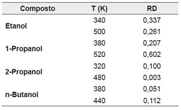 Analisando isoladamente o álcool 2-propanol, da faixa de temperatura adequada, onde obtevepropôs-se cálculos experimentais com se apenas dois resultados para as temperaturas temperaturas pré-estabelecidas, dentro e fora apresentadas. A Tabela 3 ilustra os resultados.