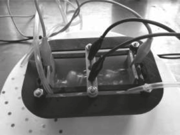 Pruebas de funcionamiento. Para validar el diseño se realizaron varias pruebas de funcionamiento involucrando como material base (sustrato) acero AISI-SAE 1020 y dos electrodosanódicos de zinc al 99%, figura 8.