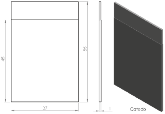 Se determinó el área del cátodo, en base a las posibles pruebas que se pueden extraer de esta como: ASTM E797 / E797M-15 [10], ASTM F1375-92 [11], ASTM B117-11 [12], ASTM D3359-09e2 [13], ASTM G5-94 [14], ASTM G59 - 97 [15], ASTM G102 - 89 [16], 2015, ASTM G1 – 03 [17].
