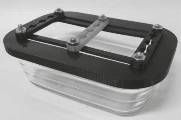 Diseño cuba. La reproducibilidad es un factor fundamental en la industria que permite dar garantía de las características de un proceso o un producto; debido a ello se diseñó una cuba, figura 2, para contener los electrolitos y poder llevar acabo la aplicación de los recubrimientos electrolíticos tomando como base el cálculo y tamaño de espécimen a recubrir.