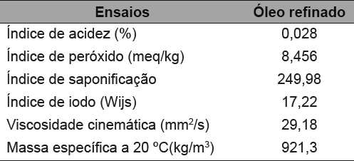 A caracterização físico-química do óleo vegetal é uma etapa importante no preparo de sistemas microemulsionados, tendo em vista a sua utilização como combustível. Uma das principais características dos óleos reflete principalmente na acidez, que indica o seu estado de conservação. A tabela 2, apresenta os resultados das características físico-químicas do óleo refinado de babaç.