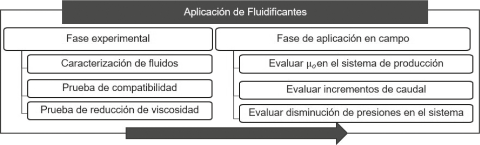 Pelo menos 50% da produção colombiana é de petróleo pesado. Este óleo bruto é geralmente produzido através de emulsões de água em óleo, mostrando uma viscosidade aparente superior à sua real viscosidade. Devido ao resultado desse aumento, são geradas restrições através das linhas de fluxo, diminuindo a produção de fluidos. Como solução alternativa, propõe-se a implementação de fluidizadores (agentes redutores de viscosidade).