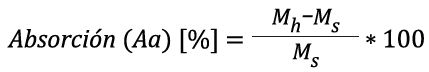 La absorción de agua (Aa) del total de la masa del espécimen se calculó para cada muestra mediante la siguiente ecuación: