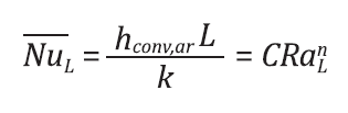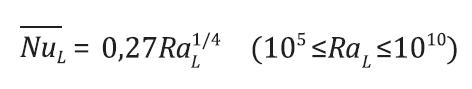 Uma vez que o movimento do ar na sala de préresfriamento é ocasionado somente por forças de empuxo no seu interior (convecção natural), de acordo com Incropera et al. [23], para o adequado cálculo do coeficiente de transferência de calor convectivo, tem-se a seguinte correlação para o cálculo de ℎ𝑐𝑜𝑛𝑣,𝑎𝑟: