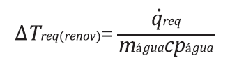 (11)Após calculada a carga térmica do sistema e estimada a carga térmica requerida pela fonte fria, tem-se que a variação de temperatura total requerida pela água de renovação (∆𝑇𝑟𝑒𝑞(𝑟𝑒𝑛𝑜𝑣)) é igual a: