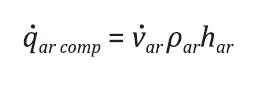 (4)Onde 𝑣̇𝑎𝑟 é a vazão de ar comprimido no sistema; 𝜌𝑎𝑟 e ℎ𝑎𝑟 a densidade e a entalpia do ar comprimido, respectivamente, de acordo com a temperatura e pressão de descarga dos compressores utilizados.
