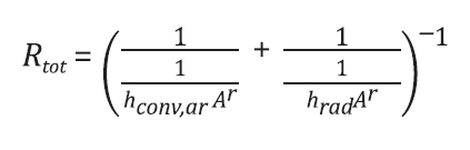 (7)Onde ℎ𝑐𝑜𝑛𝑣,𝑎𝑟 é o coeficiente de transferência de calor convectivo do ar, ℎ𝑟𝑎𝑑 o coeficiente de transferência de calor por radiação e 𝐴′ a área de troca térmica.