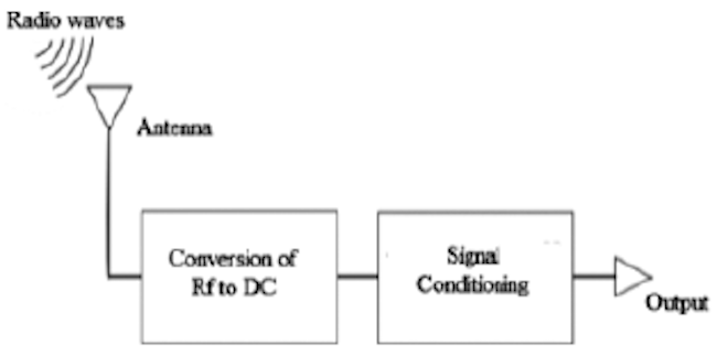 The circuit works by collecting the RF electromagnetic waves through an antenna, the energy of the waves is stored in two input capacitors that after a certain time is discharged through the diode circuit that rectify the current and convert it into pulsating direct current stored in the two output electrolytic capacitors.