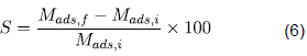 Para a preparação das amostras foram colocados em béqueres de 100 mL, 25 g do adsorvato diesel S-10, em contato com as fibras de coco verde, de massa (Mads,i ) determinada no planejamento fatorial. O meio foi agitado com um agitador magnético (modelo SL-91, SOLAB, Brasil) durante o tempo de contato estabelecido no planejamento experimental à temperatura de 26 °C. Ao término da agitação a mistura fibra e óleo foi filtrada a vácuo com bomba de estágio duplo (modelo TBV12, TANDER, Brasil), o material fibroso foi então pesado em uma balança analítica (modelo AE220, SHIMADZU, Brasil) e determinada sua massa (Mads,f ) para quantificação de óleo adsorvido. A sorção (S), em termos percentuais de óleo adsorvido em relação à massa de adsorvente, é representada pela Equação 6.