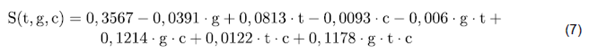 A partir do planejamento experimental fatorial 2³ foi realizada uma análise estatística dos resultados utilizando o software Statistica, e tomando como base um grau de confiança de 95 % o modelo gerado pelo software (Equação 7), obteve um coeficiente de correlação de R² = 0,89, sendo catalogado como bom pelas características das variáveis experimentais propostas.