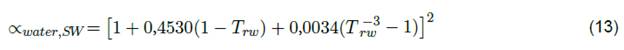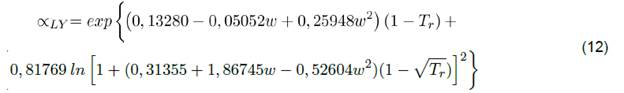 La ecuación 10 se usa para determinar el parámetro de la ecuación 5a; es decir, únicamente para las sustancias puras. Esta función se puede calcular para propano, NFM y sulfolano respectivamente a partir de PR [14]. Otros autores como Søreide y Whitson [29], también se atrevieron a modificar la función alfa para sustancias puras, con el objetivo de predecir la presión de vapor del agua con una precisión inferior al 0,5 % en rangos de temperatura de 288,15 a 598,15 K.