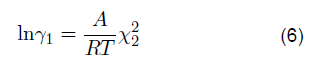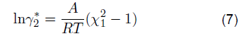 De la ecuación 6 se deduce el parámetro de Margules para los sistemas propano-NFM y propano-sulfolano, luego, para el propano en base a la ecuación de Gibbs-Duhem se puede establecer el producto del cociente por la fracción del gas como se expresa a continuación