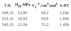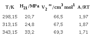 Los valores reportados en las Tablas 1 y 2 corresponden a los parametros de KI, obtenidos para cada sistema binario desde 298,15 a 343,15 K a presiones elevadas [5,6]. Las especificaciones que se muestran en la Tabla 1 son los parámetros correspondientes de la ecuación de Krichevsky-Ilinskaya (KI) ajustada a propano (2) + NFM (1).