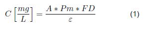 Los valores utilizados para realizar el cálculo de la concentración en la ecuación 1 fueron: Pm = 449,6 g/L, FD = 180, ε=26 900 y A =1,66 .