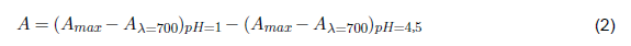 Donde Amax es la lectura del pico más alto a pH=1 y pH=4,5, y A==700 es la lectura de absorbancia a 700 nm.