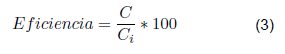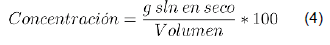 Donde C es la concentración de la solución en y Ci a la cantidad de materia prima en la extracción.