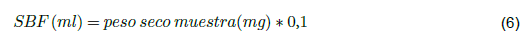 Para las pruebas de solubilización, se sumergieron las muestras en una solución de fluido corporal simulado (SBF), cuya cantidad por muestra se calculó mediante la ecuación 6 [14].
