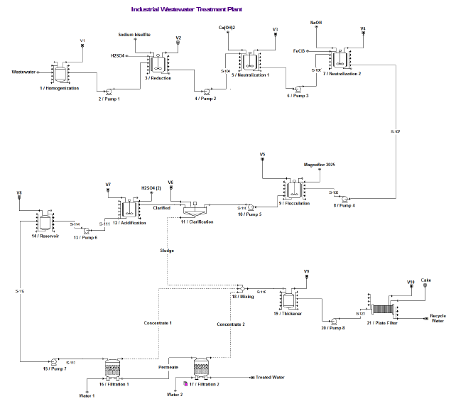 Figure 1 shows the block diagram of the chromic wastewater treatment process described above.