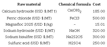 Table 9 breaks down the annual costs for the consumption of raw materials in the proposed wastewater treatment plant.