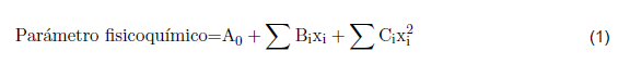 Se realizó un ajuste a una ecuación con interacciones lineales y cuadráticas que describe cada parámetro fisicoquímico en función de las composiciones de las familias químicas que fueron significativas en el análisis de varianza (ecuación 1).