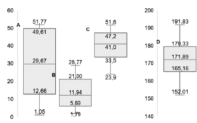 Se desarrolló el análisis estadístico descriptivo a todos los datos de los parámetros fisicoquímicos de las bioceras y se elaboró un diagrama de cajas y bigotes para cada parámetro (Figura 1). Se identificaron los valores que delimitan los cuartiles para cada parámetro fisicoquímico y se asignó un puntaje para cada cuartil con el que se pudo clasificar las bioceras según su calidad. Los puntajes se establecieron de 1 a 4, donde 1 es de menor calidad y 4 es de mayor calidad (Tabla 3).