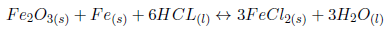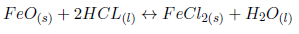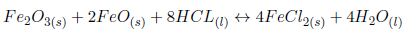 La capa de óxido sobre la superficie del acero está constituida mayoritariamente por wustita (FeO), y en menor cantidad por hematita (Fe2O3) y magnetita (Fe3O4) [6]. Y las posibles reacciones químicas entre la capa superficial y la solución decapante están dadas por las ecuaciones 1, 2, 3 y 4; de las cuales predomina la reacción 3 debido a la presencia mayoritaria de FeO en la superficie del material [7].