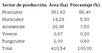 En la Tabla 2 se pueden observar las medidas en hectáreas de cada uno de los sectores de producción.