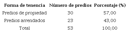 No obstante, aunque se trate de áreas de cultivo pequeñas hay grandes extensiones de tierra que pertenecen a una pequeña porción de la población y los productores poseen el terreno en forma de arriendo en una alta proporción (Tabla 5).