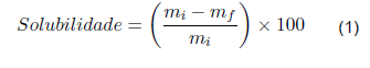 A solubilidade em água foi expressa em termos de massa seca dissolvida, sendo calculada de acordo com a Equação (1).