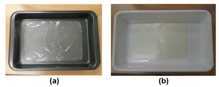 Em termos de características visuais, os filmes elaborados com nanocelulose sem óleo de buriti ficaram incolores conforme Figura 1(a), já os filmes com a incorporação do óleo de buriti apresentaram coloração amarela, variando a intensidade de acordo com o teor do óleo de buriti adicionado como mostra a Figura 1(b). Todos os filmes ficaram uniformes.